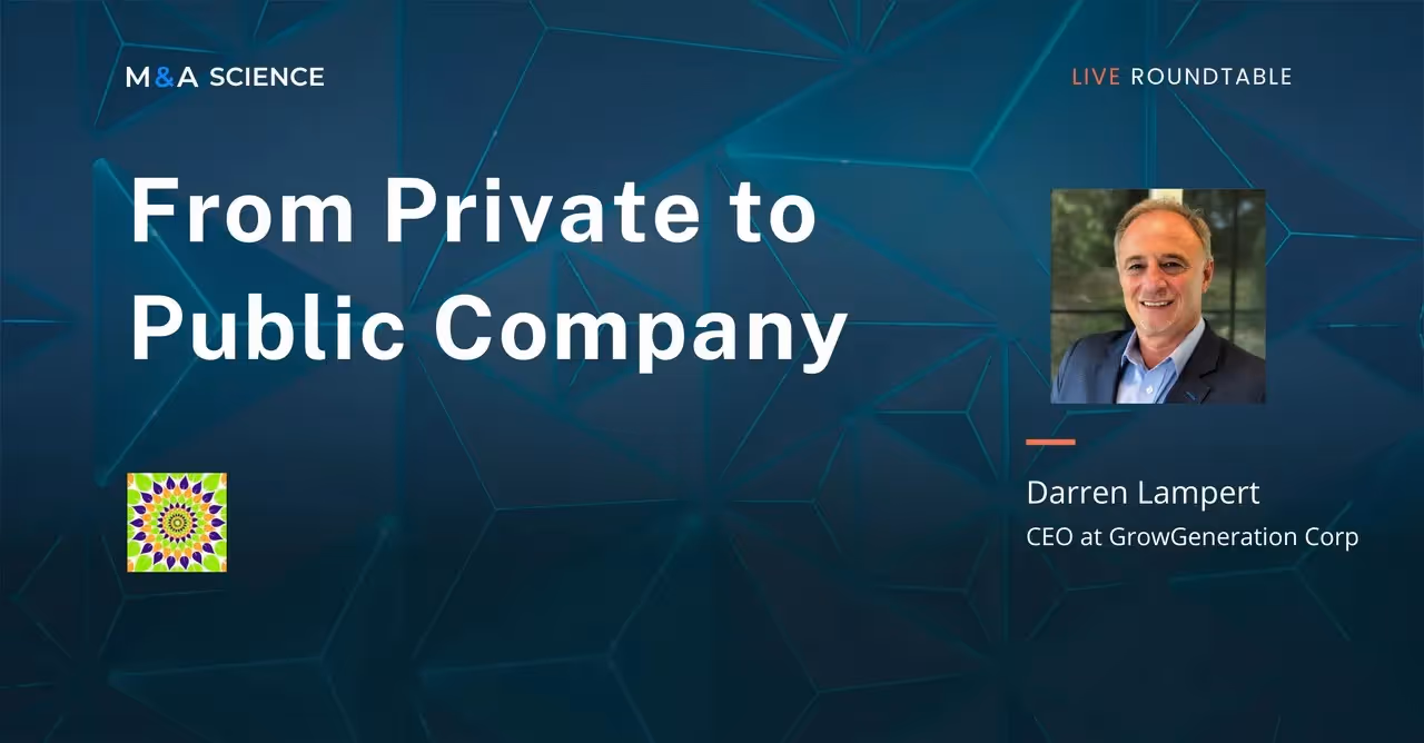 In this episode, Darren Lampert, CEO at GrowGeneration Corp, talks about what it's like going from a private to a public company. Darren lived through this transition and discusses how M&A has changed from private to public, how life as a CEO changed, and the benefits of becoming a public company.