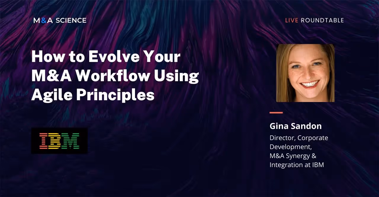 Today. I'm here with Gina Sandon, director of corporate development, mergers and acquisitions, synergy, and integration at IBM. She has been at IBM for over 10 years. Today We're going to discuss how to evolve your M&A workflow using Agile principles.